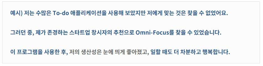 (이 이야기들은 제품을 사용했던 고객의 후기여도 괜찮다!)