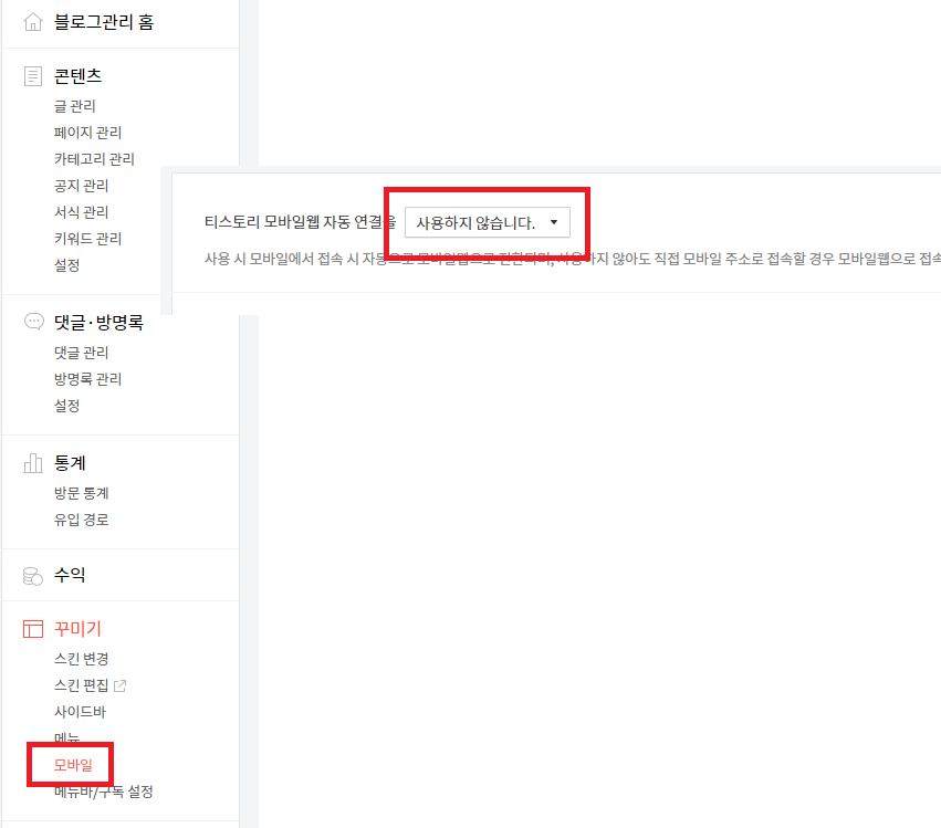 - 티스토리 메뉴에 모바일을 반응형으로 변화가 가능합니다.