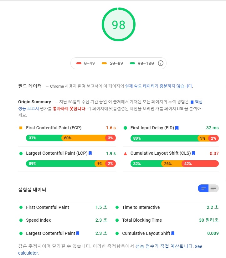 PageSpeed는 높게 나올것입니다.